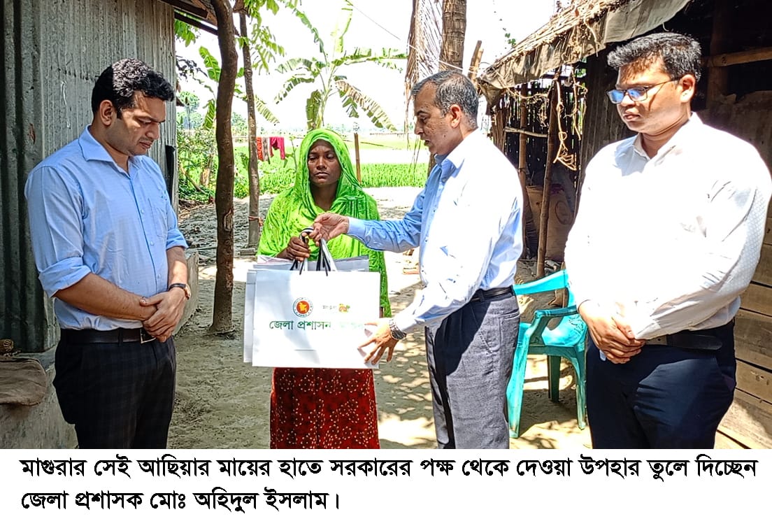 বহুল আলোচিত মাগুরার সেই আছিয়ার বাড়িতে সরকারের পক্ষে ঈদ শুভেচ্ছা উপহার পৌঁছে দিলেন মাগুরার জেলা প্রশাসক মোঃ অহিদুল ইসলাম।