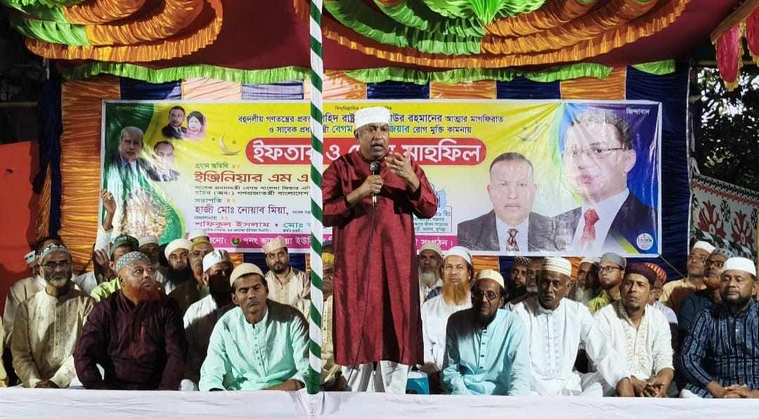 শুক্রবার (২১ মার্চ) উপজেলার ভাষানিয়া ইউনিয়নের কৃষ্ণপুর জীবন সাহেবের বাগান বাড়িতে এ দোয়া ও ইফতার মাহফিলের আয়োজন করে ভাষানিয়া ইউনিয়ন বিএনপি ও অঙ্গসংগঠনের নেতৃবৃন্দ। অনুষ্ঠানে প্রধান অতিথি হিসেবে বক্তব্য রাখেন, বেগম খালেদা জিয়ার প্রাক্তন এপিএস ও গণপ্রজাতন্ত্রী বাংলাদেশ সরকারের অবসরপ্রাপ্ত সচিব ইঞ্জিনিয়ার এম.এ মতিন খান।