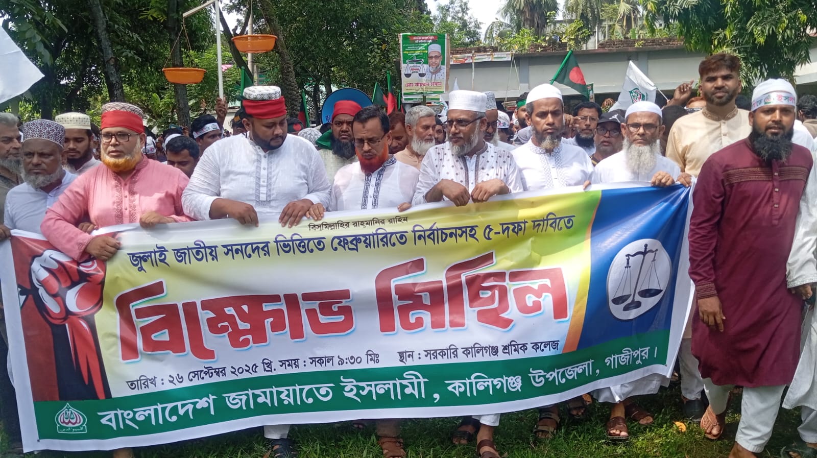 গাজীপুরে কালীগঞ্জে ৫ দফা দাবীতে জামায়াত ইসলামীর সমাবেশ ও বিক্ষোভ মিছিল