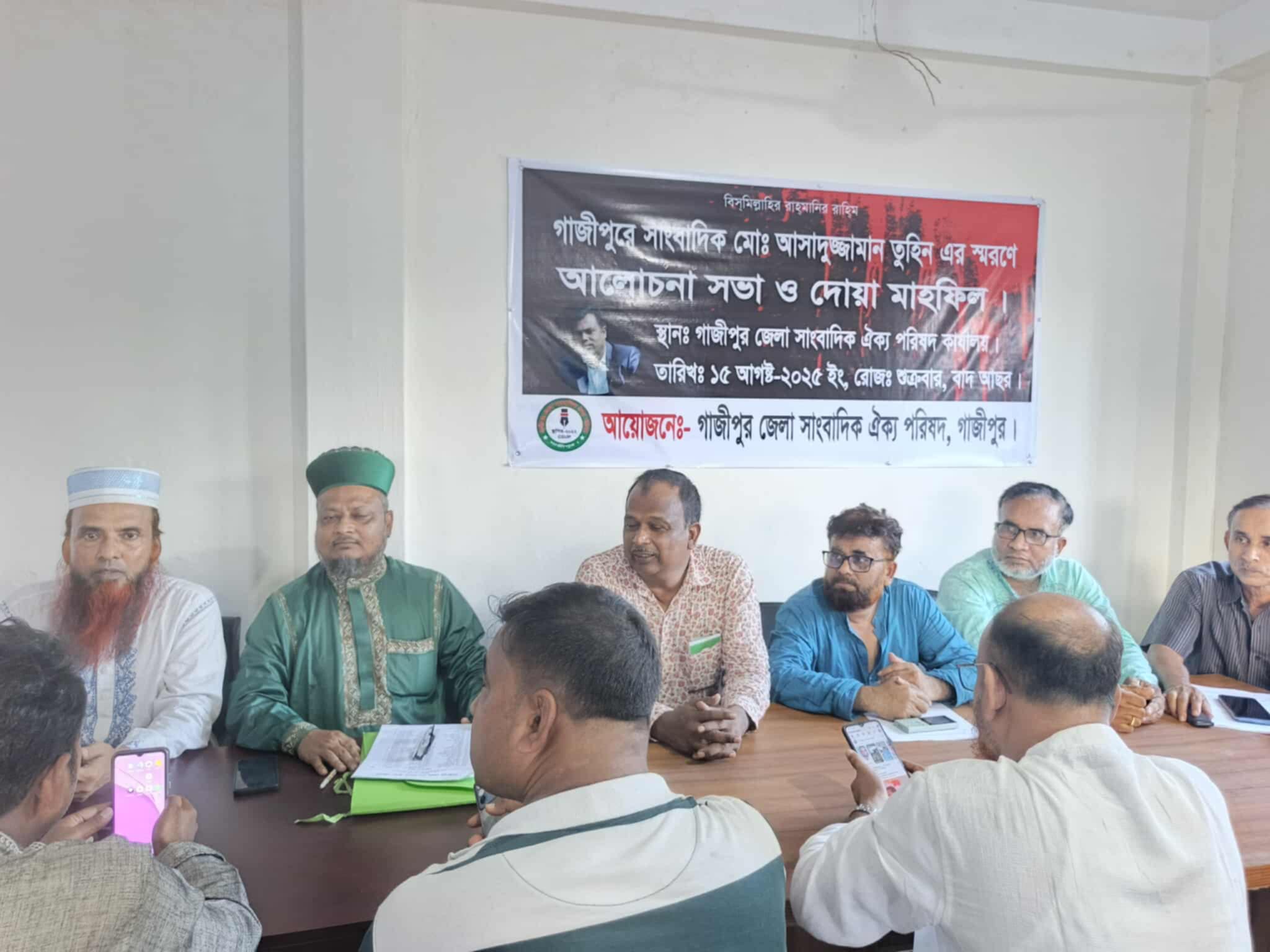 গাজীপুরে সাংবাদিক আসাদুজ্জামান তুহিনের‎ হত্যার ন্যায় বিচার না পাওয়া পর্যন্ত গাজীপুরের সাংবাদিক’রা আন্দোলন চালিয়ে যাবে