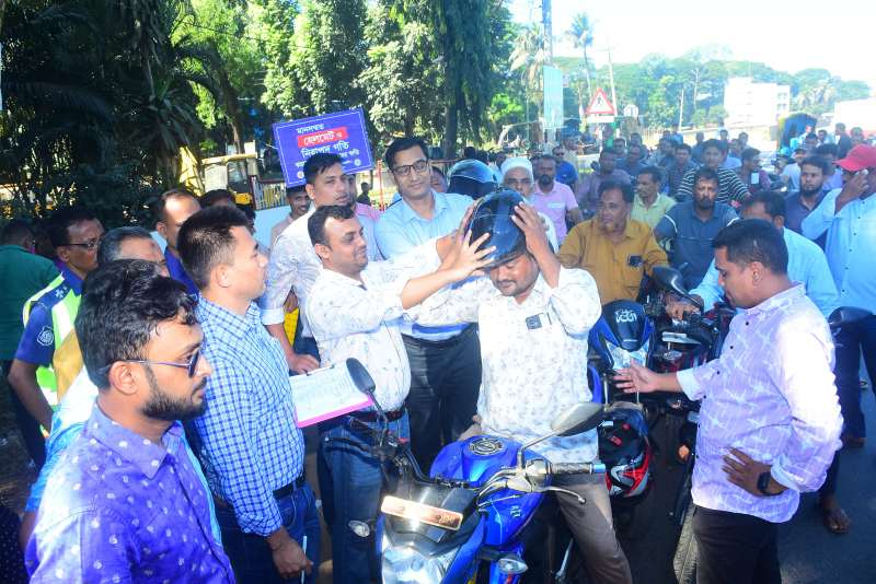 চন্দনাইশে সড়ক বিভাগের উদ্যোগে মোটরসাইকেল আরোহীদের মাঝে হেলমেট বিতরণ