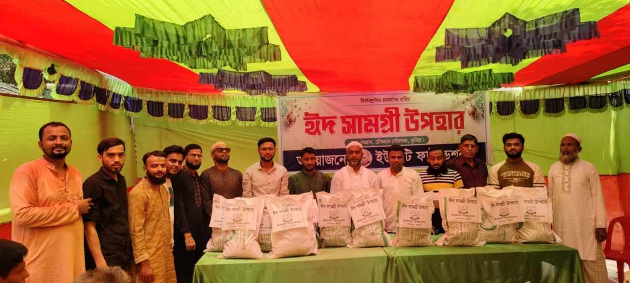 কুমিল্লার চৌদ্দগ্রামে পবিত্র ঈদুল ফিতর উপলক্ষে মানবিক সংগঠন ‘ইউনিটি ফাউন্ডেশন’ এর উদ্যোগে অসহায় মানুষের মাঝে উপহার হিসেবে ঈদ সামগ্রী বিতরণ করা হয়েছে। এতে সেমাই, চিনি সহ নিত্য প্রয়োজনীয় খাদ্য সামগ্রী ছিলো। ফাউন্ডেশনের পক্ষ থেকে ঈদ সামগ্রী উপহার পেয়ে সন্তোষ জানিয়ে আন্তরিক কৃতজ্ঞতা প্রকাশ করেছেন উপকারভোগী অসহায় পরিবারের সদস্যরা। ভবিষ্যতেও এমন মানবিক কার্যক্রম অব্যাহত থাকবে বলে জানিয়েছেন সংগঠনের নেতৃবৃন্দ।