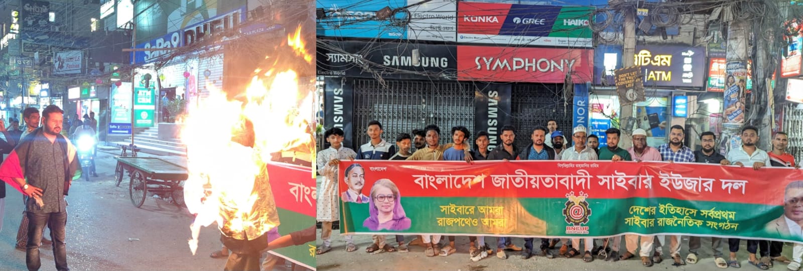 দেশের ইতিহাসে সর্বপ্রথম সাইবার রাজনৈতিক সংগঠন 'বাংলাদেশ জাতীয়তাবাদী সাইবার ইউজার দল' এর উদ্যেগে সংগঠনের কেন্দ্রীয় নির্বাহী কমিটির প্রতিষ্ঠাতা সভাপতি, বিএনপি বহিঃবিশ্ব কমিটির প্রকাশনা বিষয়ক সম্পাদক, নারায়ণগঞ্জ মহানগর বিএনপি নেতা এস. আলম রাজীবের নেতৃত্বে নারায়ণগঞ্জ শহরের বিবি রোডেস্থ গ্রীন্ডলেইজ ব্যাংকের মোড় এলাকায় ফিলিস্তিনের গাজা ও রাফায় দখলদার গণহত্যাকারী ইসরায়েলি বাহিনীর নৃশংস, বর্বরোচিত হামলা ও হত্যাযজ্ঞের প্রতিবাদে বিক্ষোভ কর্মসূচি পালন করা হয়। এসময় ইসরায়েলের জাতীয় পতাকা ও প্রধানমন্ত্রী বেনজামিন নেতানিয়াহুর কুশপুত্তলিকা দাহ করে প্রতিবাদ ও বিক্ষোভ প্রদর্শন করা হয়।