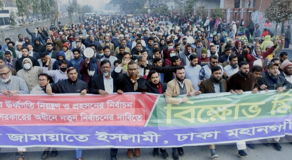 জানুয়ারী ২০২৪ ইং রবিবার সকালে নিত্য প্রয়োজনীয় দ্রব্যের ঊর্ধ্বগতি নিয়ন্ত্রণ, গ্যাস ও বিদ্যুৎ সঙ্কট দূরীকরণে কার্যকর পদক্ষেপ গ্রহণ এবং নির্বাচন বাতিল করে কেয়ারটেকার সরকারের অধীনে নতুন নির্বাচনের তারিখ ঘোষণার দাবিত মিছিল।