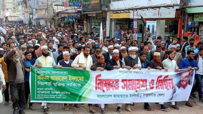 জামায়াতের সাবেক ভারপ্রাপ্ত সেক্রেটারী জেনারেল এটিএম আজহারুল ইসলামের নিঃশর্ত মুক্তির দাবীতে ঠাকুরগাঁওয়ে বিক্ষোভ সমাবেশ ও মিছিল অনুষ্ঠিত হয়েছে। বাংলাদেশ জামায়াতে ইসলাম ঠাকুরগাঁও জেলা শাখার আয়োজনে ১৮ ফেব্রুয়ারি মঙ্গলবার বিকেলে ঠাকুরগাঁও সাধারণ পাঠাগার মাঠ প্রাঙ্গণে বিক্ষোভ সমাবেশটি অনুষ্ঠিত হয়। পরে সেখান থেকে একটি মিছিল বের হয়ে শহরের প্রধান প্রধান সড়ক প্রদক্ষিণ করে। বাংলাদেশ জামায়াতে ইসলাম এর ঠাকুরগাঁও জেলা আমীর অধ্যাপক বেলাল উদ্দিন প্রধানের সভাপতিত্বে সভায় প্রধান অতিথি হিসেবে বক্তব্য দেন সাবেক ঠাকুরগাঁও জেলা আমীর ও রংপুর-দিনাজপুর অঞ্চল টিম সদস্য অধ্যাপক মাওলানা আব্দুল হাকিম। এ সময় আরো বক্তব্য দেন ছাত্রশিবির ঠাকুরগাঁও জেলা সভাপতি ছাত্রনেতা রাশিদুল ইসলাম, ছাত্রশিবির ঠাকুরগাঁও শহর সভাপতি আমজাদ আলী, ঠাকুরগাঁও জেলা জামায়াতের সেক্রেটারি ও ঠাকুরগাঁও সদর উপজেলার সাবেক ভাইস চেয়ারম্যান মোহাম্মদ আলমগীর প্রমুখ।