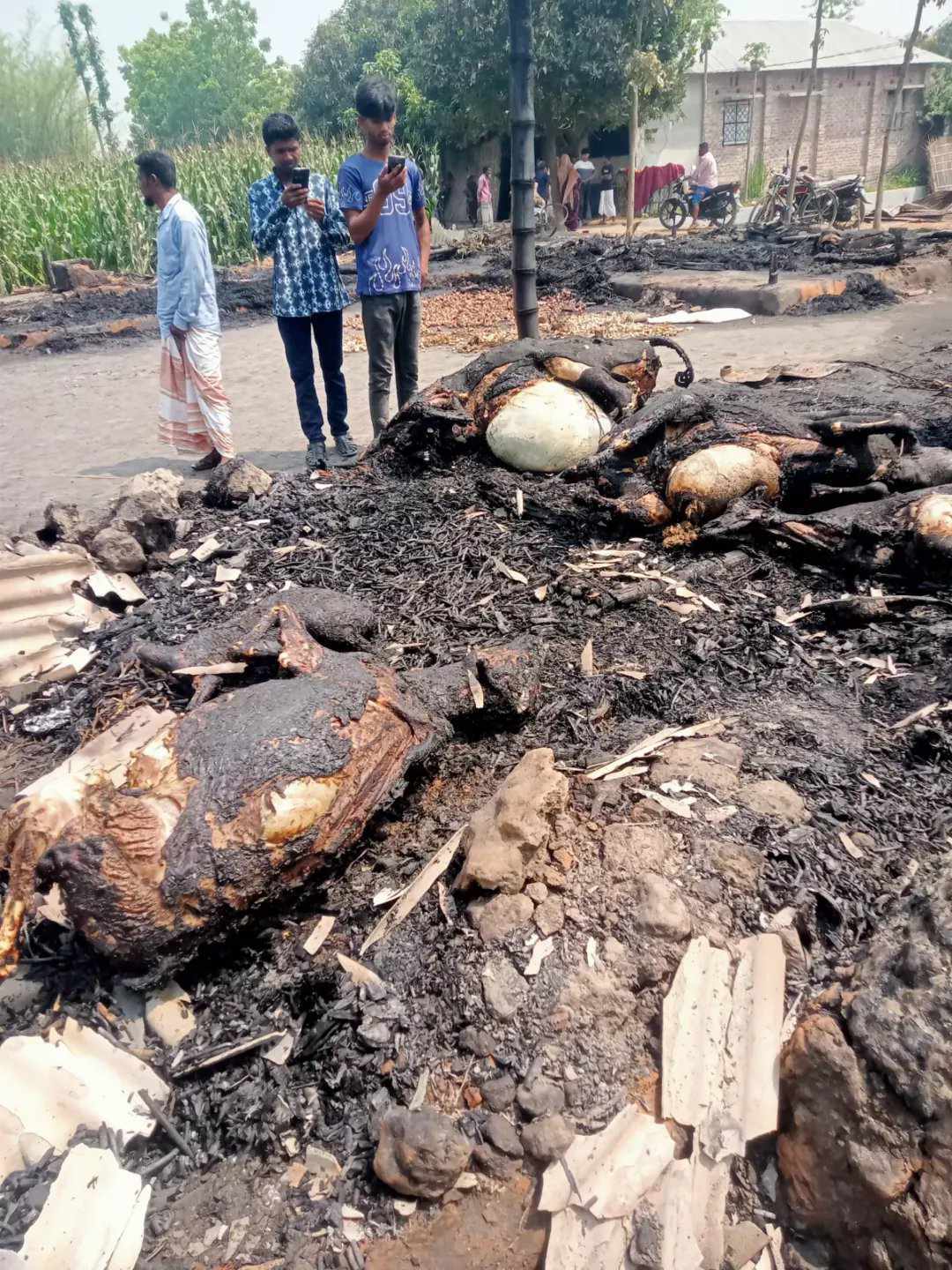 আগুনের সবকিছু পুড়ে যাওয়া ক্ষতিগ্রস্তরা হলেন, জবাইদুর রহমান, মনজুর আলম, আজেক আলী,আফজাল হোসেন, খাইরুল আলম, মধ্য চাপাপাড়া গ্রামের ইউপি সদস্য ইশারত আলী জানান, আমার বাড়ির পাশে বাবা ছেলের সহ আরও তিনটি পরিবার ‘আগুনে সব কিছু পুড়ে গেছে। কয়েকটি গরু, ছাগল, মুরগি টাকা পয়সা, ধান চাল, জমির কাগজপত্র, জাতীয় পরিচয় পত্র, ছেলে মেয়েদের সার্টিফিকেট, বই পুস্তক, কৃষিপণ সহ পড়নের মতো কোনো কাপড় নেই।ছেলেমেয়েদের পড়ার মতো বই নেই ।পোড়া বাড়ির লোকজনকে খাবে খাওয়ার মত কোন কিছুই নেই। থাকার মতো বা মাথা বুঝার মত কোনো ঘর নেই।’ এই বিষয়ে, পীরগঞ্জ উপজেলা নিবার্হী কর্মকর্তা মো.রাকিবুল হাসানের সাথে মুঠো ফোনে যোগাযোগ করা হলে ঈদুল ফিতরের ছুটি থাকায় তিনি ফোন রিসিভ করেননি। এদিকে ‘অগ্নিকাণ্ডে ৫ টি পরিবারের ঘরবাড়ি আগুনে পুড়ে ছাই হয়ে যাওদের তালিকা করে ক্ষতিগ্রস্তদের দ্রুত সরকারিভাবে সহায়তা প্রদান করে ক্ষতিগ্রস্ত পরিবারদের পাশে দাঁড়ানোর জন্য জরুরী বলে, মনে করছেন এলাকাবাসী।