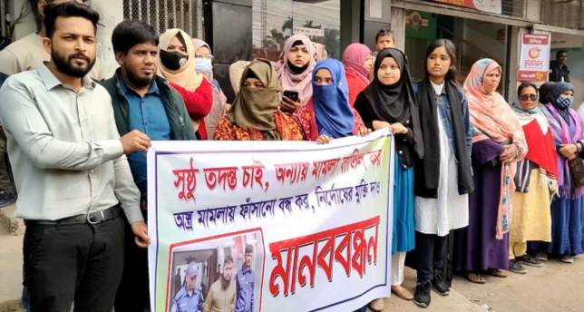 ঠাকুরগাঁওয়ে বিদেশী পিস্তল সহ আটক সোহেল রানা ষড়যন্ত্রের স্বীকার দাবি জানিয়ে মানববন্ধন করেছেন তার পরিবার ও এলাকাবাসী। ১১ ফেব্রুয়ারি মঙ্গলবার দুপুরে শহরের চৌরাস্তা মোড়ে এই মানববন্ধন করেন পরিবারের স্বজন সহ এলাকাবাসী। ঘণ্টব্যাপী এই মানববন্ধনে পরিবারের স্বজনদের পাশাপাশি স্থানীয় এলাকাবাসীরা অংশ নেয়। এ সময় বক্তব্য দেন, সোহেলে রানার স্ত্রী শাহরিন জান্নাত, ভাগনী তাসনিয়া হাসরাত হাজ্জু, স্থানীয় এলাকাবাসী মাসুদ, সালাম প্রমুখ। বক্তরা বলেন, 'ষড়যন্ত্রের স্বীকার হয়েছে সোহেলে রানা। সে কখনো কোন খারাপ কাজের সাথে জড়িত ছিলো না। রুমের ভিতরে কেউ এই পিস্তল রেখে দিয়েছে এটা আমাদের ধারণা। আমরা চাই প্রশাসনের সুষ্ঠু তদন্তে প্রকৃত দোষীদের বিচার হোক'।