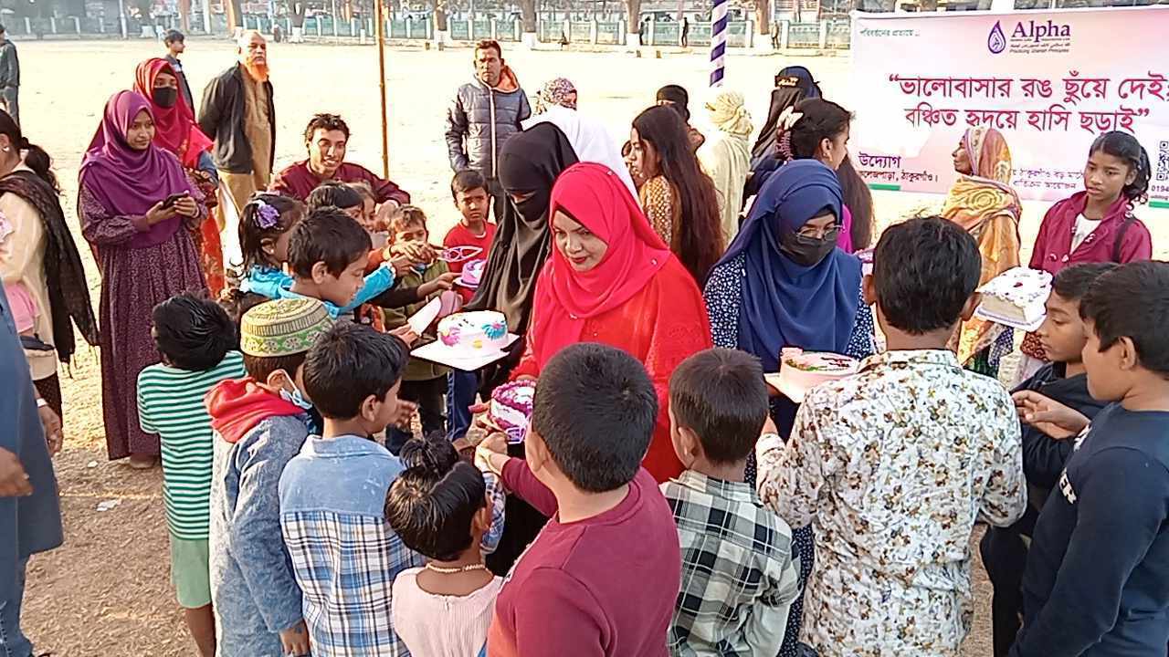 ভালোবাসার রঙ ছুঁয়ে দেই বঞ্চিত হৃদয়ে হাসি ছড়ায় এই প্রতিপাদ্যকে সামনে রেখে ঠাকুরগাঁওয়ে ১৪ ফেব্রুয়ারি শুক্রবার ভালোবাসা দিবস উপলক্ষে বঞ্চিতদের নিয়ে কেক কাটা অনুষ্ঠান অনুষ্ঠিত হয়েছে।