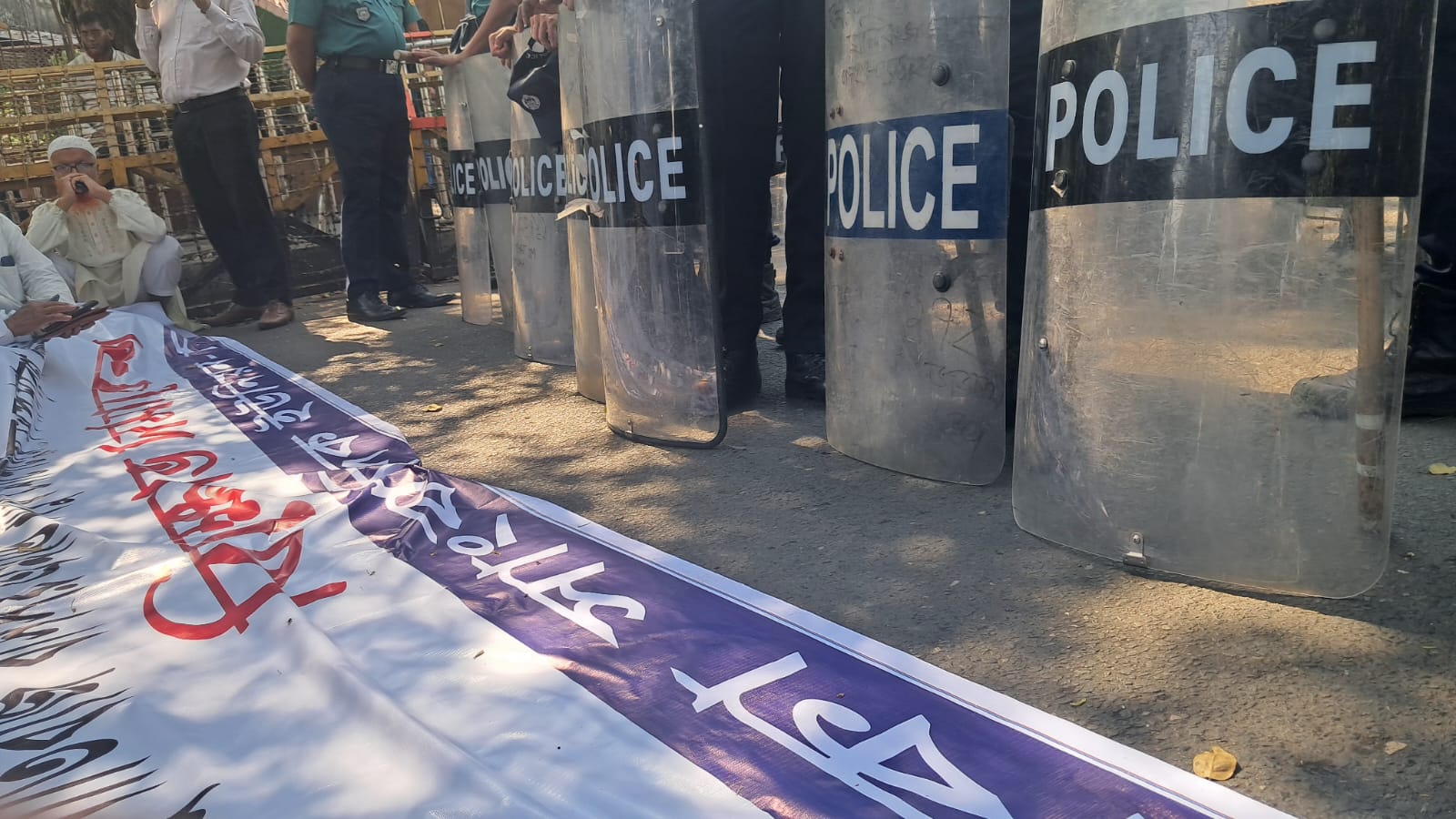 এসময় মিছিল টি কাকরাইল মসজিদের সামনে পৌঁছাতেই পুলিশি বাঁধায় মূখে পরে এসময় সাংবাদিক নেতৃবৃন্দ সেখানে অবস্থান নেন এবং বাঁধায় মূখে সড়ক অবরোধ করে রাখে। এবং সালাম মোর্শেদে পদত্যাগের দাবীতে বিভিন্ন প্রতিবাদী স্লোগান দিতে থাকে।