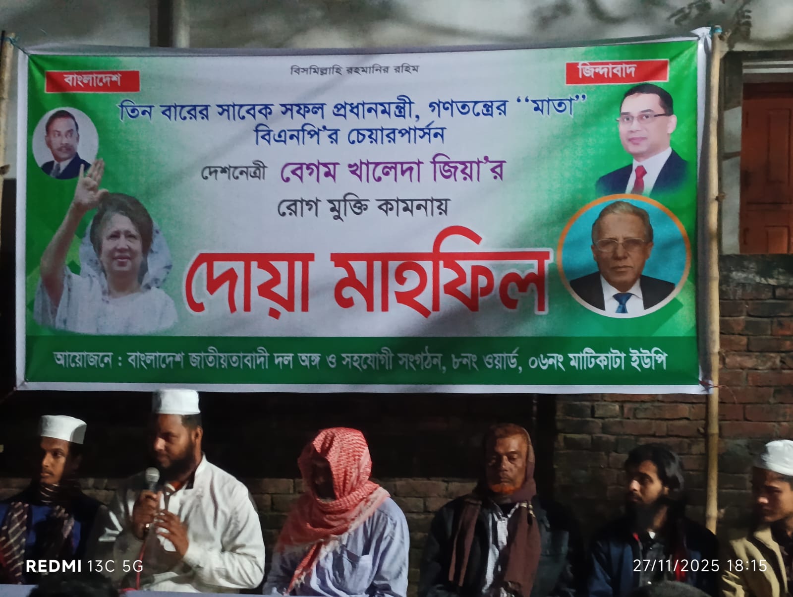 ২৭ নভেম্বর ( বৃহস্পতিবার) বাদ মাগরিব দোয়া মাহফিলের আয়োজন করেন ৬নং মাটিকাটা ইউনিয়ন ৮ নম্বর ওয়ার্ড বিএনপি ও অঙ্গ সহযোগী সংগঠন।