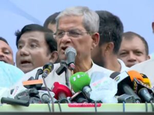 তাই এই সরকারের কাছে দেশের, স্বাধীনতা, গণতন্ত্র, মানুষের অধিকার, সম্পদ নিরাপদ নয়। আমরা পানি চাই। আমরা আমাদের অধিকার চাই। অভিন্ন নদীর ন্যায্য হিস্যা চাই, সীমান্তহত্যা বন্ধ চাই। তা না করে এই সরকার সব কিছু বিলিয়ে দিয়েছে।’