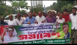 বিএনপি’র চেয়ারপার্সন, সাবেক প্রধানমন্ত্রী দেশনেত্রী, প্রতিহিংসার শিকার বেগম খালেদা জিয়া’র নিঃশর্ত মুক্তির দাবীতে আজ পল্টনে পার্টি অফিসের সামনে সমাবেশ।