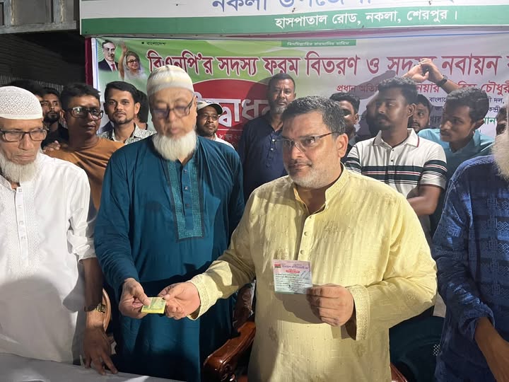 বিএনপির কেন্দ্রীয় কর্মসূচি মোতাবেক ৮ জুন সন্ধ্যায় শেরপুরের নকলা উপজেলা বিএনপির কার্যালয়ে উপজেলা বিএনপির সদস্য ফরম বিতরণ ও সদস্য নবায়ন কর্মসূচির উদ্বোধন করেন বিএনপির কেন্দ্রীয় নির্বাহী কমিটির সদস্য ও শেরপুর জেলা বিএনপির যুগ্ম আহ্বায়ক ইঞ্জিনিয়া মোঃ ফাহিম চৌধুরী। নকলা উপজেলা বিএনপির সাবেক আহবায়ক আলহাজ খোরশেদুর রহমানের সভাপতিত্বে অনুষ্ঠিত উদে¦াধনী অনুষ্ঠানে শেরপুর জেলা বিএনপির যুগ্ন আহবায়ক মাহমুদুল হক দুলাল , নকলা পৌর বিএনপির সাবেক আহবায়ক কামরুল ইসলাম লিটন, ইউপি চেয়ারম্যান মহিউদ্দিন বুলবুল, বিএনপি নেতা ই¯্রাফিল খলিল , নকলা উপজেলা ওলামা দলের সাবেক সাধারণ সম্পাদক মাওলানা হারুনুর রশিদ,নকলা উপজেলা যুব দলের আহবায়ক শফিউল আলম পলাশ সহ বিএনপি ও অঙ্গ সংগঠনের নেতৃবৃন্দ উপস্থিত ছিলেন ।