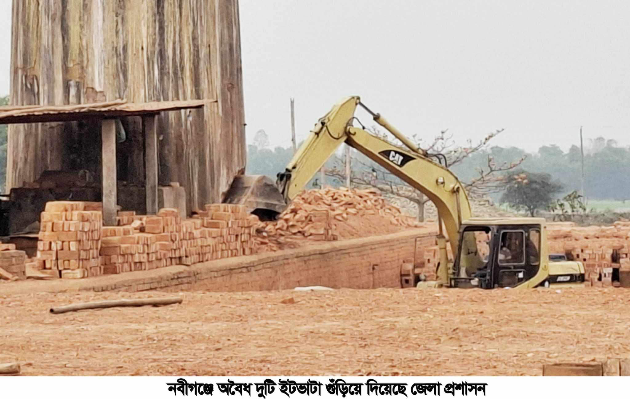 হবিগঞ্জের নবীগঞ্জ উপজেলায় দুটি অবৈধ ইটভাটা গুঁড়িয়ে দিয়েছে জেলা প্রশাসন। মঙ্গলবার (১১ মার্চ) দুপুরে এক্সিকিউটিভ ম্যাজিস্ট্রেট রনজিৎ চন্দ্র দাসের নেতৃত্বে যৌথ বাহিনী অভিযান চালিয়ে গোল্ড ব্রিকস ও মাস্টার ব্রিকস নামের ইটভাটা দুটিকে ধ্বংস করা হয়।