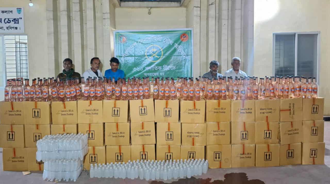 জব্দকৃত মালামাল হলো, ১ কেরু মদ, ১ লিটারী বোতল ২ হাজার ৪৬ পিস, বাংলা মদ ২৫০ মি. লি. এর ১৪০টি বোতল, নগদ টাকা ৩৪ হাজার ৮শ ৪৫ টাকা, ৩টি চেক বইও ৮টি মোবাইল ফোন। আটককৃতরা হলো, হবিগঞ্জ জেলার নবীগঞ্জ উপজেলার তিমিরপুর গ্রামের মনাই সরকারের পুত্র চিত্ত রঞ্জন সরকার (৪৫), উপজেলার কুর্শি ইউনিয়নের খনকারী পাড়া গ্রামের আফসান মিয়ার পুত্র মোঃ সাদিক (৩১), নবীগঞ্জ পৌরসভার চরগাঁও, গ্রামের মৃত তবো মিয়ার পুত্র আশিকুর রহমান (৪০),