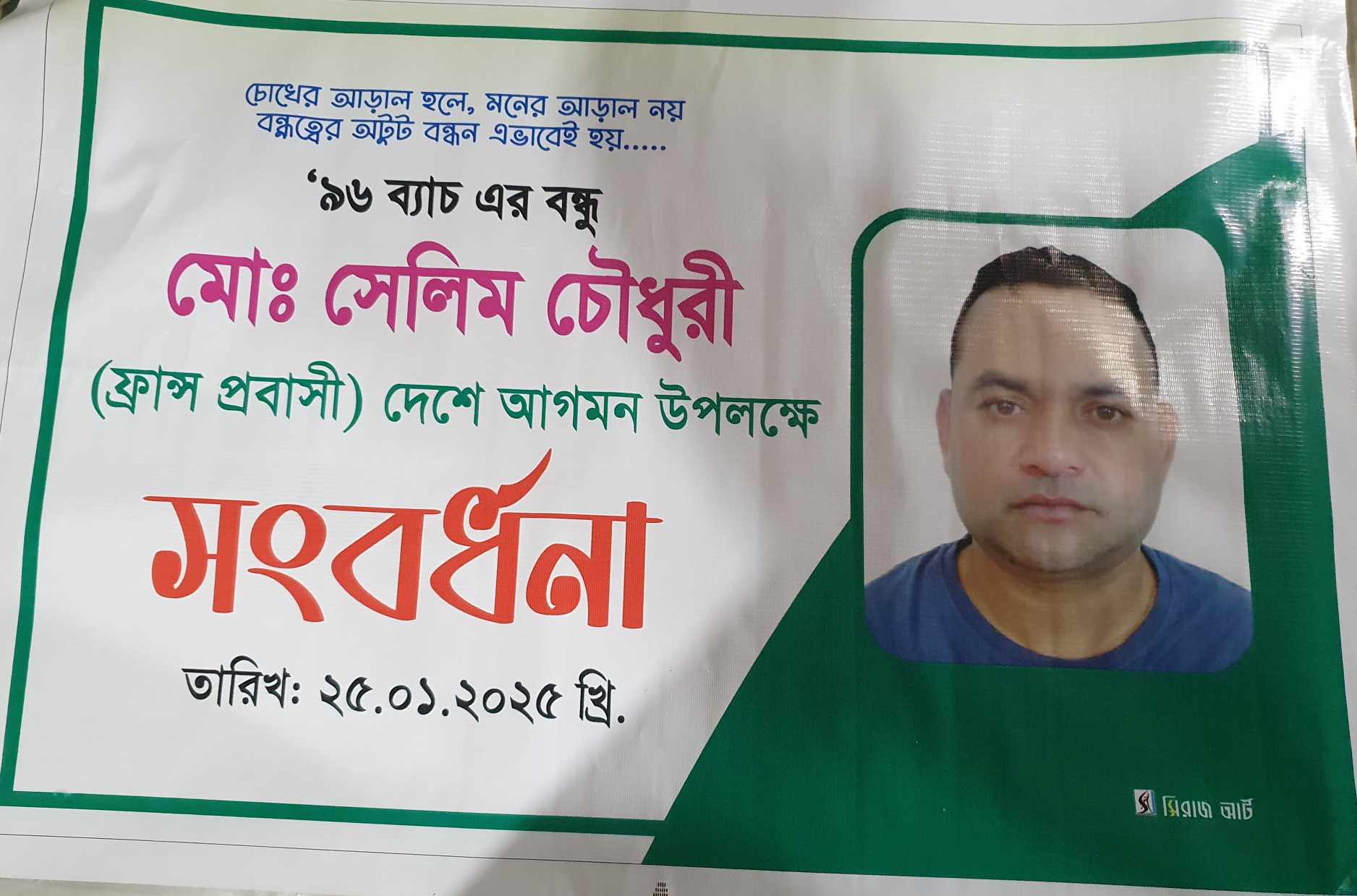 এ স্লোগানকে সামনে রেখে। নবীগঞ্জ জে কে উচ্চ বিদ্যালয়ের ৯৬ ব্যাচ এর বন্ধ সেলিম চৌধুরী (ফ্রান্স প্রবাসী)কে দেশে আগমন উপলক্ষে গত শনিবার সন্ধা ৭ ঘটিকায় উসমানী রোড়অস্ত নবীগঞ্জ চাইনিজ রেষ্টুরেন্টে এক সংবর্ধনা অনুষ্ঠত হয়।উক্ত সংবর্ধনায় সভাপতিত্ব করেন ৯৬ ব্যাচের যুগ্ন আহবায়ক মোঃবদরুজ্জামান য়ুগ্ন আহবায়ক মোঃ হাবিবুর রহমান চৌধুরী শামীম এর উপস্থাপনায় এতে বক্তব্য প্রধান করেন যুগ্ন আহবায়ক হাফিজুর রহমান মিলন,