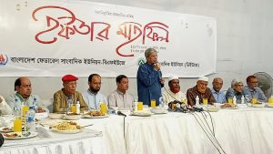 গত ১৬ মার্চ ২০২৫ ইং জাতীয় প্রেস ক্লাবের মিলনায়তনে ফেডারেল সাংবাদিক ইউনিয়ন ও ঢাকা সাংবাদিক ইউনিয়নের আয়োজিত ইফতার মাহফিলে বাংলাদেশ ফেডারেল সাংবাদিক ইউনিয়নের ভারপ্রাপ্ত সভাপতি ওবায়দুর রহমান শাহিনের সভাপতিত্বে ইফতার মাহফিলে এ বক্তব্য