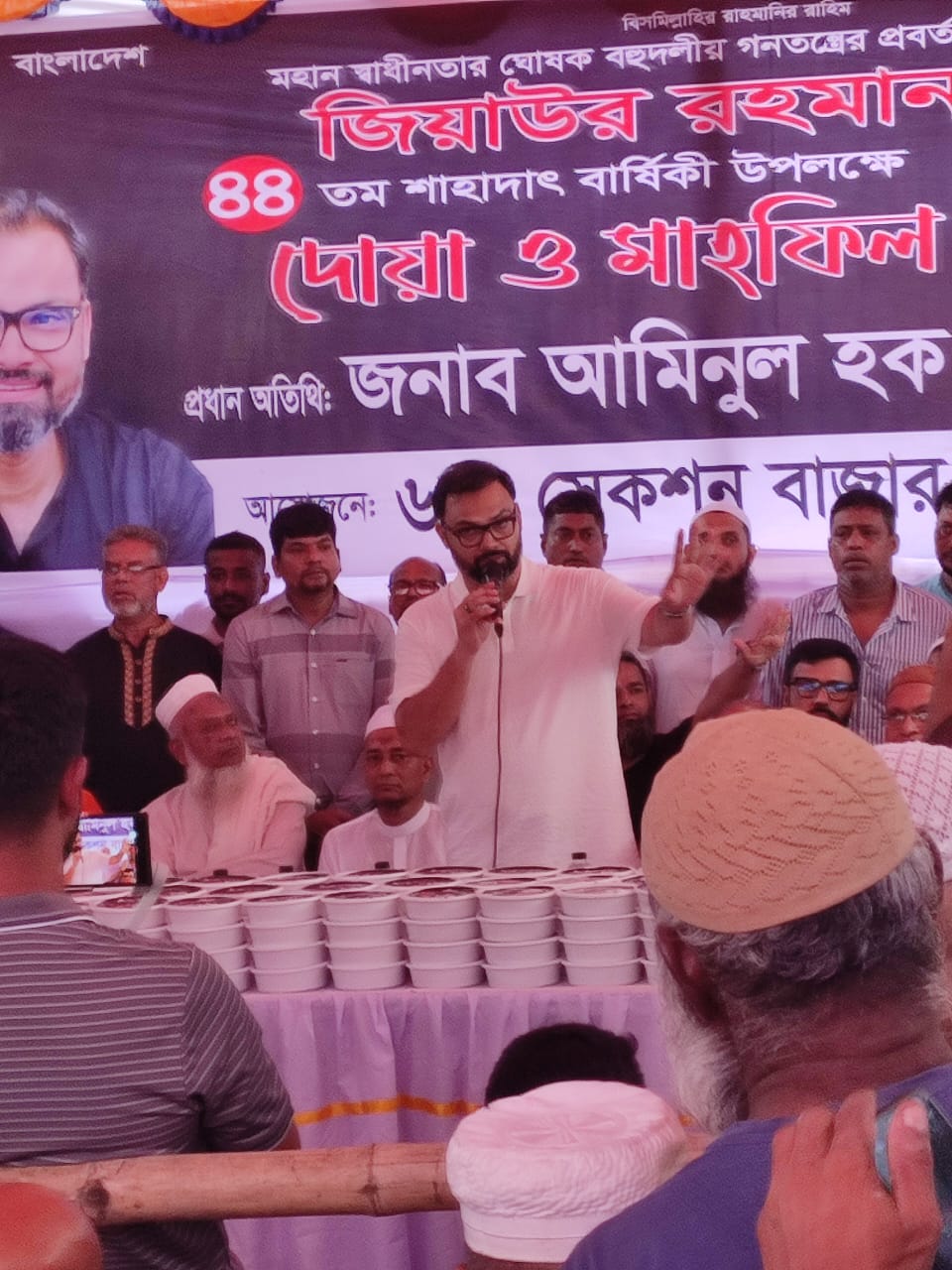 এসময় আমিনুল হক আরও বলেন শহীদ রাষ্ট্রপতি জিয়াউর রহমান বাংলাদেশ একটি আধুনিক রাষ্ট্র গড়ার লক্ষ্য আধুনিক শিক্ষা ব্যবস্থা, শিল্প বিপ্লব, গার্মেন্টস শিল্প, আধুনিক স্থাপত্য শিল্প, আধুনিক প্রতিরক্ষা ব্যবস্থা, অর্থব্যবস্থা, সামাজিক উন্নয়ন, যোগাযোগ ব্যবস্থা আধুনিকায়ন করেন। সর্বোপরি বাংলাদেশকে আধুনিক বাংলাদেশে গড়ে তুলেন। বাংলাদেশ একটি তোলা বিহীন ঝুড়ি থেকে একটি ইমাজিং টাইগারের দেশে এ রূপান্তরিত করেন তিনি।