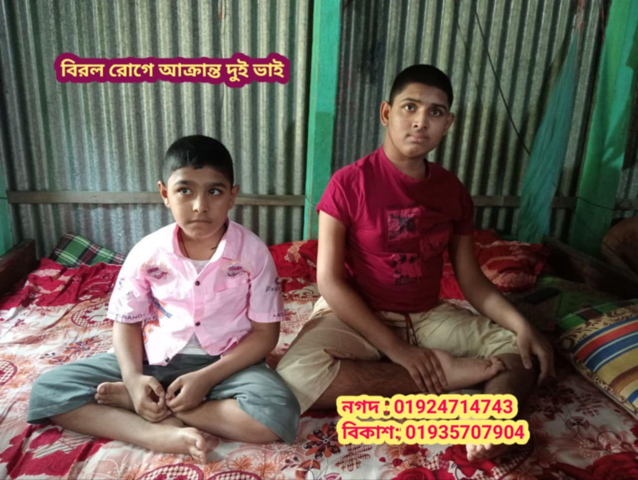 টাংগাইলের ভূঞাপুর উপজেলার গোবিন্দাসী ইউনিয়ন এর প্রত্যন্ত বিলচাপড়া গ্রামের মৃত হযরত আলী তালুকদার এর ছেলে সাইদুল ইসলাম তালুকদার এর বড় ছেলে নাঈমুল দ ইসলাম(১৩) ও ছোট ছেলে নাহিদ হাসান(৭) এক জটিল ও বিরল রোগে আক্রান্ত হযে ধুঁকে ধুঁকে জীবন যাপন করছেন।