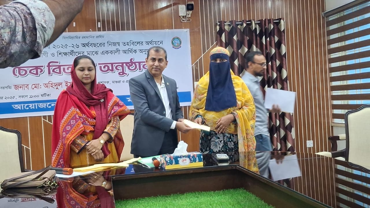 মাগুরায় জেলা পরিষদের উদ্যোগে দুস্থ, অসহায় রোগী ও শিক্ষার্থীদের মাঝে চেক বিতরণ