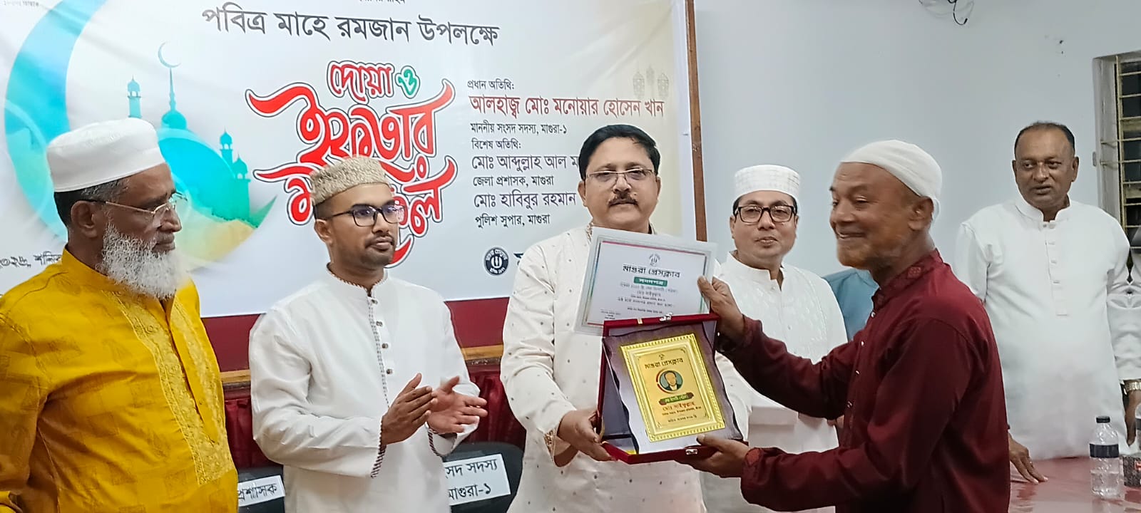মাগুরা প্রেসক্লাবের আয়োজনে শনিবার সন্ধ্যায় প্রেসক্লাবের কনফারেন্স রুমে আলোচনা সভা দোয়া ও ইফতার মাহফিল এবং সনদপত্র ও ক্রেস্ট বিতরণ অনুষ্ঠানে তাঁকে এ পুরস্কার প্রদান করা হয়।