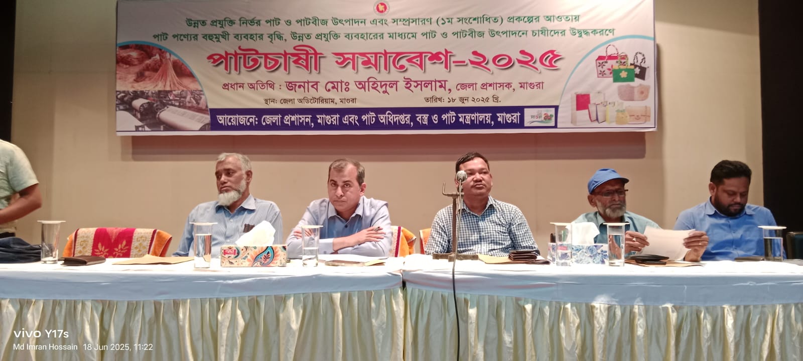 উন্নত প্রযুক্তি নির্ভর পাট ও পাটবীজ উৎপাদন এবং সম্প্রসারণ প্রকল্পের আওতায় পাট পণ্যের বহুমুখী ব্যবহার বৃদ্ধি, উন্নত প্রযুক্তি ব্যবহারের মাধ্যমে পাট ও পাটবীজ উৎপাদনে চাষীদের উদ্বুদ্ধকরণে মাগুরা জেলা প্রশাসন, এবং পাট অধিদপ্তর মাগুরা ও বস্ত্র ও পাঠ মন্ত্রণালয়ের আয়োজনে বুধবার বেলা ১১ টায় জেলা অডিটরিয়ামে পাট চাষী সমাবেশ ২০২৫ অনুষ্ঠিত হয়েছে।
