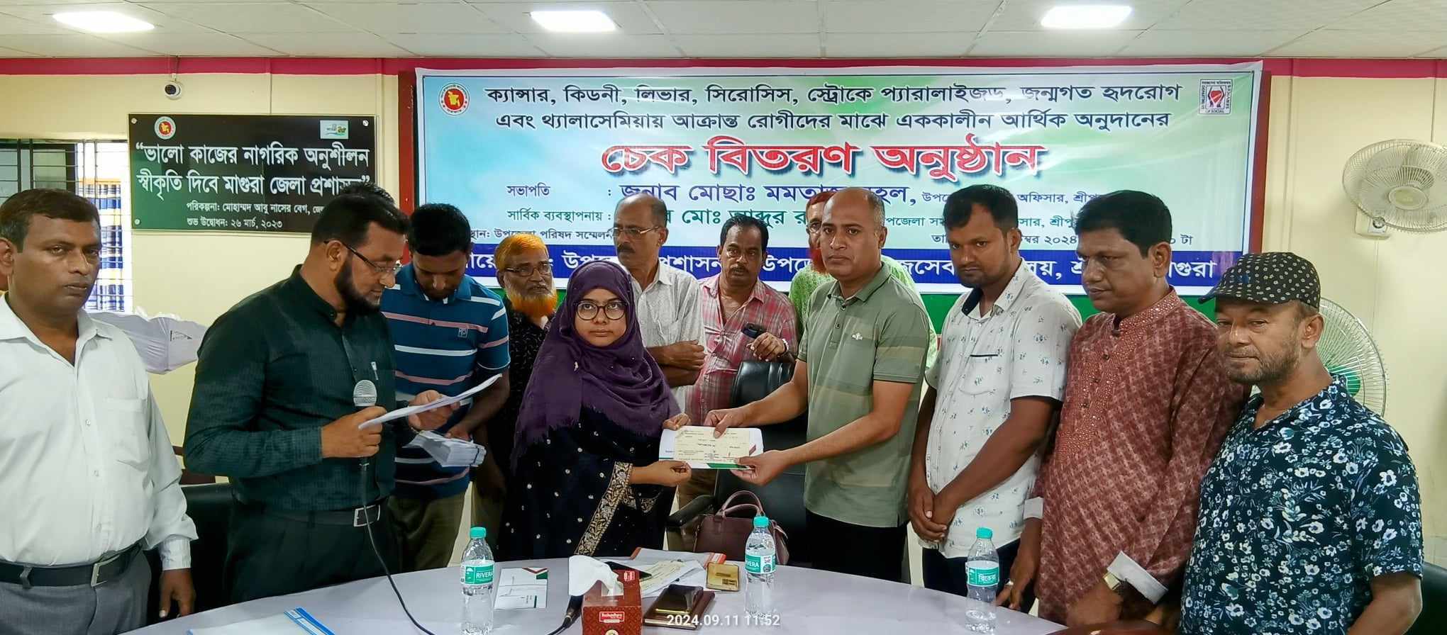 মাগুরার শ্রীপুর উপজেলা পরিষদ মিলনায়তনে বুধবার বেলা সাড়ে ১১টার দিকে ছয়টি দুরারোগ্য ব্যাধিতে আক্রান্ত রোগীদের মাঝে এককালীন আর্থিক অনুদানের চেক বিতরণ করা হয়েছে। উপজেলা প্রশাসন ও উপজেলা সমাজসেবা কার্যালয়ের আয়োজনে ক্যান্সার, কিডনি, লিভার সিরোসিস, স্ট্রোক প্যারালাইজড, জন্মগত হৃদরোগ এবং থ্যালাসেমিয়ায় আক্রান্ত ৬৮ জন জটিল রোগে আক্রান্ত রোগীদের মাঝে প্রত্যেককে ৫০ হাজার টাকার চেক প্রদান করা হয়। এ সময় উপজেলার ৩ জন ভিক্ষুককে একটি ভ্যান, তিনটি করে ছাগল ও নগদ অর্থ প্রদান করা হয়। এছাড়া তিনটি স্বেচ্ছাসেবী সংগঠনের মাঝে আর্থিক অনুদানের চেক প্রদান করা হয়।