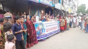 মাগুরা শহরের জামরুলতলা এলাকায় শনিবার রাতে ক্ষুদ্র ব্যবসায়ী ভজন কুমার গুহ কে জবাই করে হত্যার প্রতিবাদে রবিবার বিকেলে মানববন্ধন করেছে এলাকাবাসী। বিকাল চারটায় শহরের জামরুলতলা পূজা মন্ডপের সামনে মানববন্ধনে নিহত ভজন গুহর পরিবারের পাশাপাশি সর্বস্তরের মানুষ অংশ নেন।