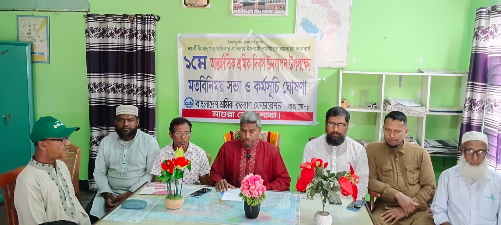 ২৯ এপ্রিল বুধবার দুপুরে শহরের কাউন্সিল পাড়ায় আল আমিন ইনস্টিটিউট স্কুলে এ মতবিনিময় সভা ও কর্মসূচি ঘোষণা অনুষ্ঠানের আয়োজন করা হয়। বাংলাদেশ শ্রমিক কল্যাণ ফেডারেশন মাগুরা জেলা শাখার সভাপতি ও শালিখা উপজেলা পরিষদের সাবেক ভাইসচেয়ারম্যান মোঃ ইব্রাহিমের সভাপতিত্বে বক্তব্য রাখেন জেলা শাখার সেক্রেটারি সাজ্জাদুর রহমান।