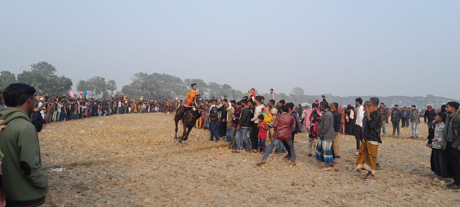 সত্যপুর গ্রামের আব্দুল্লাহ জানান, প্রতিবছর হেমন্তের ধান কাটা শেষে মঘীর এ মাঠে ঘোড় দৌড় প্রতিযোগিতা হয়ে থাকে। আমরা গ্রামের মানুষেরা একটু আনন্দ পেতে এ ঘোড় প্রতিযোগিতা দেখে থাকি । এখানে আমাদের পরিবারের ছেলেমেয়েরা আনন্দ উৎসব করে।