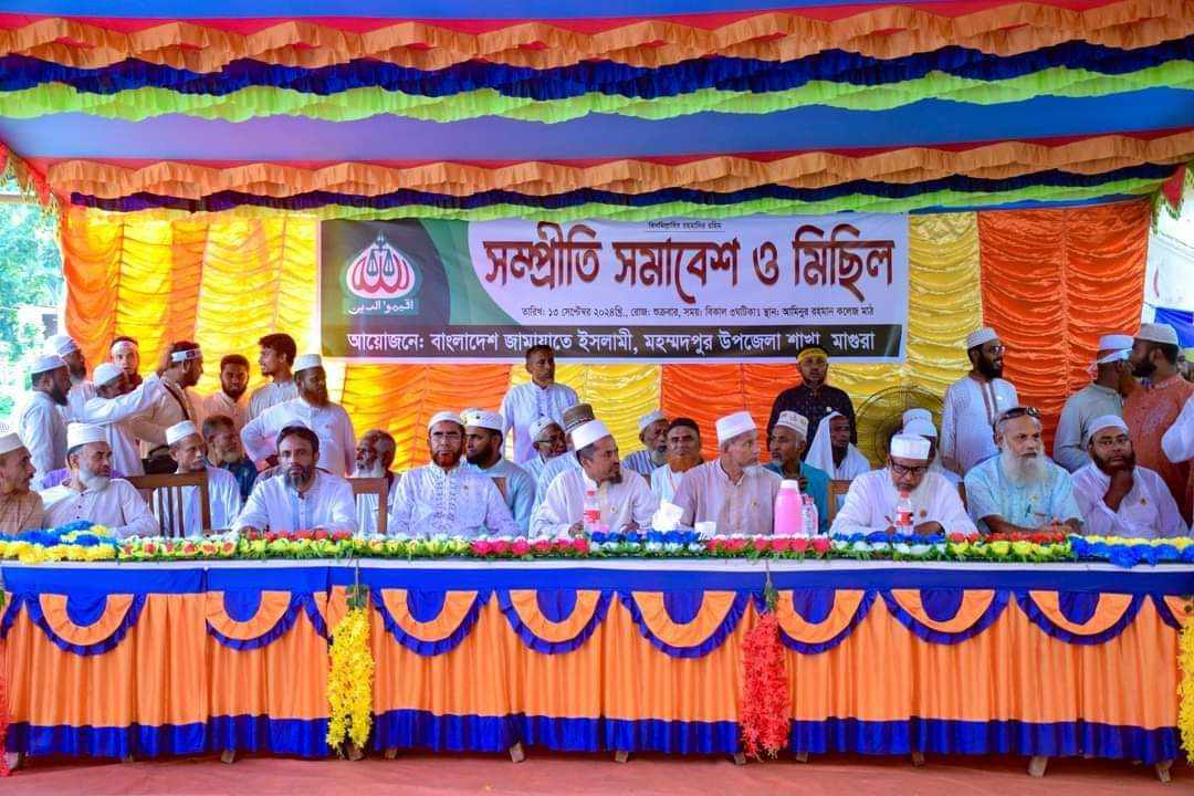 বিকেল ৩টায় মহম্মদপুর আমিনুর রহমান কলেজ মাঠে বাংলাদেশ জামায়াতে ইসলামী মহম্মদপুর উপজেলা শাখার আমির মাওলানা মোঃ কবির হুসাইনের সভাপতিত্বে সম্প্রীতি সমাবেশে প্রধান অতিথির বক্তব্য রাখেন মাগুরা জেলা শাখার আমির ও কেন্দ্রীয় মজলিশের শূরা সদস্য সাবেক ছাত্র নেতা অধ্যাপক এম বি বাকের।