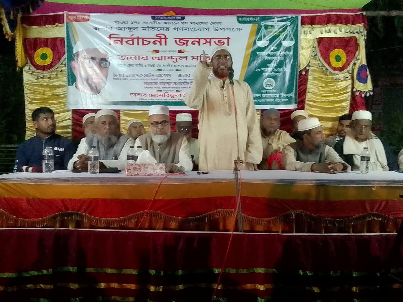 মাগুরার শ্রীপুরে জামায়াতে ইসলামী ৮নং নাকোল ইউনিয়ন শাখার উদ্যোগে নাকোল সরকারি প্রাথমিক বিদ্যালয় প্রাঙ্গনে বৃহস্পতিবার রাতে গণসংযোগ উপলক্ষে এক নির্বাচনী জনসভা অনুষ্ঠিত হয়েছে। ইউনিয়ন আমীর মোঃ শরিফুল ইসলামের সভাপতিত্বে ও ইউনিয়ন সেক্রেটারী মনিরুল ইসলামের সঞ্চালনায় সভায় প্রধান অতিথি হিসেবে উপস্থিত ছিলেন বাংলাদেশ জামায়াতে ইসলামী কেন্দ্রীয় মজলিশে শুরার অন্যতম সদস্য,যশোর- কুষ্টিয়া অঞ্চলের টিম সদস্য,জেলা জামায়াতে ইসলামীর সাবেক আমীর আগামী জাতীয় সংসদ নির্বাচনে মাগুরা-১ আসনে বাংলাদেশ জামায়াতে ইসলামীর মনোনীত সংসদ সদস্য পদপ্রার্থী আলহাজ্ব আব্দুল মতিন। বিশেষ অতিথি হিসেবে উপস্থিত ছিলেন বাংলাদেশ জামায়াতে ইসলামী মাগুরা জেলার ভারপ্রাপ্ত আমীর সহকারী অধ্যাপক মাওলানা সাঈদ আহমদ বাচ্চু। বিশেষ অতিথি হিসেবে আরও উপস্থিত ছিলেন জেলা জামায়াতে ইসলামীর অফিস সেক্রেটারি মোঃ খাইরুল ইসলাম, ইসলামী ছাত্র শিবির জেলা সভাপতি মোঃ আমীন উদ্দীন আশিক, শ্রীপুর উপজেলা আমীর সহকারী অধ্যাপক মাওলানা ফখরুদ্দিন মিজান, নায়েবে আমীর কাজী আবদুল আউয়াল সবুর, উপজেলা জামায়াতের সাবেক সেক্রেটারী ও কর্মপরিষদ সদস্য মাওলানা আমিরুল ইসলাম, কর্মপরিষদ সদস্য মোঃ ইলিয়াছুজ্জামান, কাদিরপাড়া ইউনিয়ন আমীর মোঃ রিয়াদ হোসেন নাসিম, শ্রমিক কল্যাণ ফেডারেশনের শ্রীপুর উপজেলা সভাপতি মোঃ মোজাফফর হোসেন মুন্না,সাবেক সেক্রেটারী মোঃ হামিদুল ইসলামসহ জেলা উপজেলা ও ইউনিয়ন জামায়াত শিবিরের বিভিন্ন স্তরের নেতৃবৃন্দ।