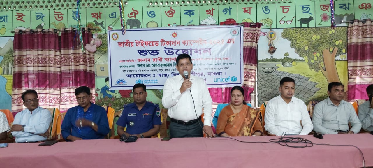 মাগুরার শ্রীপুরে টাইফয়েড টিকাদান ক্যাম্পেইন উপলক্ষে রবিবার সকালে শ্রীপুর সরকারি মডেল প্রাথমিক বিদ্যালয়ে শ্রীপুর সেন্ট্রাল কেজি স্কুলের ছাত্র তনুষ ব্যানার্জী তুর্যকে টিকা দেওয়ার মধ্যে দিয়ে টিকা কার্যক্রমের উদ্বোধন করা হয়। তনুষ ব্যানার্জী তুর্য উপজেলা নির্বাহী কর্মকর্তা রাখী ব্যানার্জীর সন্তান। একই সাথে শ্রীপুর সরকারি মডেল প্রাথমিক বিদ্যালয়ের ৪র্থ শ্রেণির ছাত্রী উম্মে হাফসা ও উম্মে হাবিবাকে টাইফয়েড টিকা প্রদানের মধ্যে দিয়ে মাসব্যাপী টিকা ক্যাম্পেনের শুভ উদ্বোধন করেন উপজেলা নির্বাহী কর্মকর্তা রাখী ব্যানার্জী।