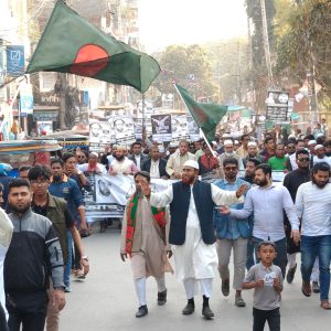 মিছিল চলাকালে নেতাকর্মীদের শ্লোগানে মুখরিত হয়ে ওঠে পুরো শহর।