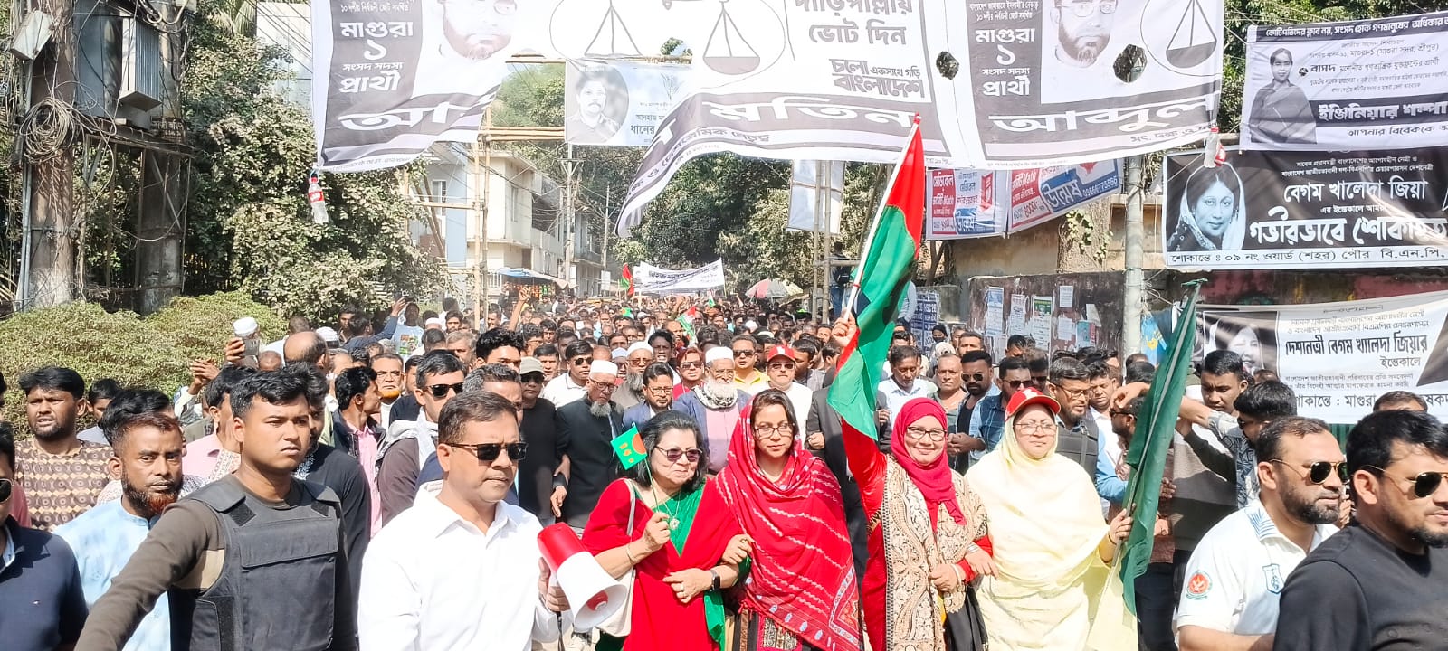 মাগুরায় আগামী ১২ ফেব্রুয়ারি অনুষ্ঠিতব্য ত্রয়োদশ জাতীয় সংসদ নির্বাচনকে সামনে রেখে সংসদীয় এলাকা মাগুরা–১ আসনে হাজার হাজার নেতাকর্মীর অংশগ্রহণে বিশাল নির্বাচনী প্রচারণা মিছিল ও জনসভা অনুষ্ঠিত হয়েছে। সোমবার বেলা ১২টায় মাগুরা শহরজুড়ে এই মিছিল অনুষ্ঠিত হয়, যা পুরো শহরে ব্যাপক আলোড়ন সৃষ্টি করে।
