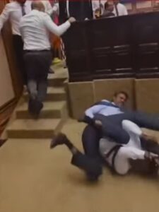 এমন সময় পরিস্থিতি এমন হয় যে এটি পার্লামেন্ট ভবন না যুদ্ধক্ষেত্র তা বুঝা মুশকিল ছিল।