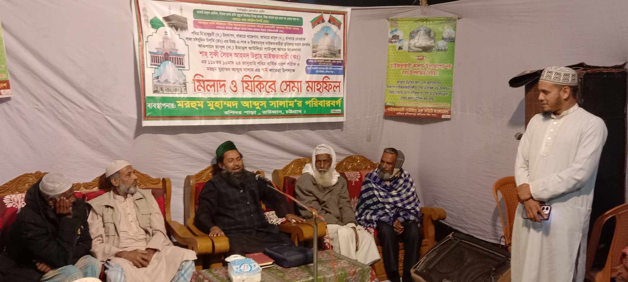 মাইজভাণ্ডারী গাউসিয়া হক কমিটি বাংলাদেশ রাউজান রশিদর পাড়া শাখার সহ- সভাপতি মাওলানা মোহাম্মদ মহিম উদ্দীন এর পরিবার বর্গের ব্যবস্থাপনায় বুধবার বাদে মাগরিব পবিত্র মেরাজুন্নবী (দঃ), আতায়ে রাসুল খাজায়ে খাজাগান খাজা মঈনুদ্দিন চিশতী( র:) এর ওরছ মোবারক ও ইমামুল আউলিয়া গাউসুল আজম মাওলানা শাহসুফী সৈয়দ আহমদ উল্লাহ মাইজভাণ্ডারী (কঃ) এর ১১৯ তম বার্ষিক ওরশ শরীফ উপলক্ষে এবং মরহুম মুহাম্মদ আবদুল সালামের ৭ম বার্ষিক ফাতেহা উপলক্ষে মিলাদ মাহফিল ও জিকিরে ছেমা মাহফিল অনুষ্ঠিত হয়েছে। আয়োজিত মাহফিলে সভাপতিত্ব করেন মাইজভাণ্ডারী গাউসিয়া হক কমিটি বাংলাদেশ রাউজান রশিদর পাড়া শাখার সভাপতি মুহাম্মদ নূরুল আলম চৌধুরী। সাধারণ সম্পাদক মুহাম্মদ রাকিব উদ্দিনের পরিচালনায় প্রধান অতিথি ছিলেন রাউজান দারুল ইসলাম কামিল মাদ্রাসার সহকারী অধ্যাপক আল্লামা ইউনুস রেজভী। প্রধান আলোচক মাইজভাণ্ডারী গাউসিয়া হক কমিটি বাংলাদেশ রাউজান উপজেলা খ" জোনের সমন্বয়কারী মাওলানা মোহাম্মদ মহিম উদ্দীন মাইজভান্ডারী, বিশেষ অতিথি ছিলেন সংগঠনের উপদেষ্টা মুহাম্মদ আবদুল খালেক চৌধুরী,নাছির উদ্দিন, হাফেজ মাওলানা মোহাম্মদ রুহুল আমিন, মাওলানা মোহাম্মদ নিজাম উদ্দিন মাইজভাণ্ডারী, হাফেজ মাওলানা মোহাম্মদ আকতার হোসাইন,মুহাম্মাদ আবু তাহের, মুহাম্মদ মোহরম মিয়া, মুহাম্মদ হাফেজুল রাহমান,মুহাম্মদ আবু তৈয়ব প্রমুখ।