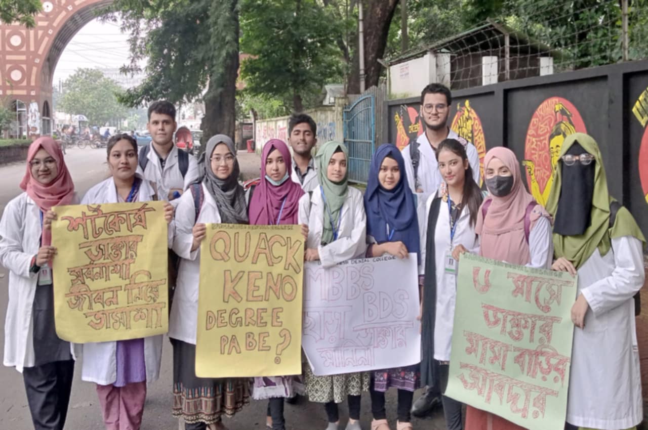 রাজধানীতে এম বি বি এস এবং বিডিএস চিকিৎসক এবং শিক্ষার্থীদের বিক্ষোভ-মিছিল