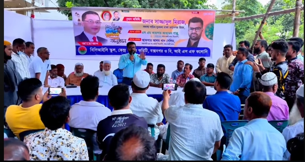 গত রবিবার ১৫ জুন ২০২৫ ইং মিরপুরের শাহ আলী থানার বিসিআইসি ও বক্সনগর এলাকাবাসীর পক্ষ হইতে ঈদ পুনর্মিলন অনুষ্ঠান অনুষ্ঠিত হয়।অনুষ্ঠানে প্রধান অতিথি হিসাবে ঢাকা মহানগর উত্তর জাতীয়তাবাদী যুবদলের সদস্য সচিব সাজ্জাদুল মিরাজ।