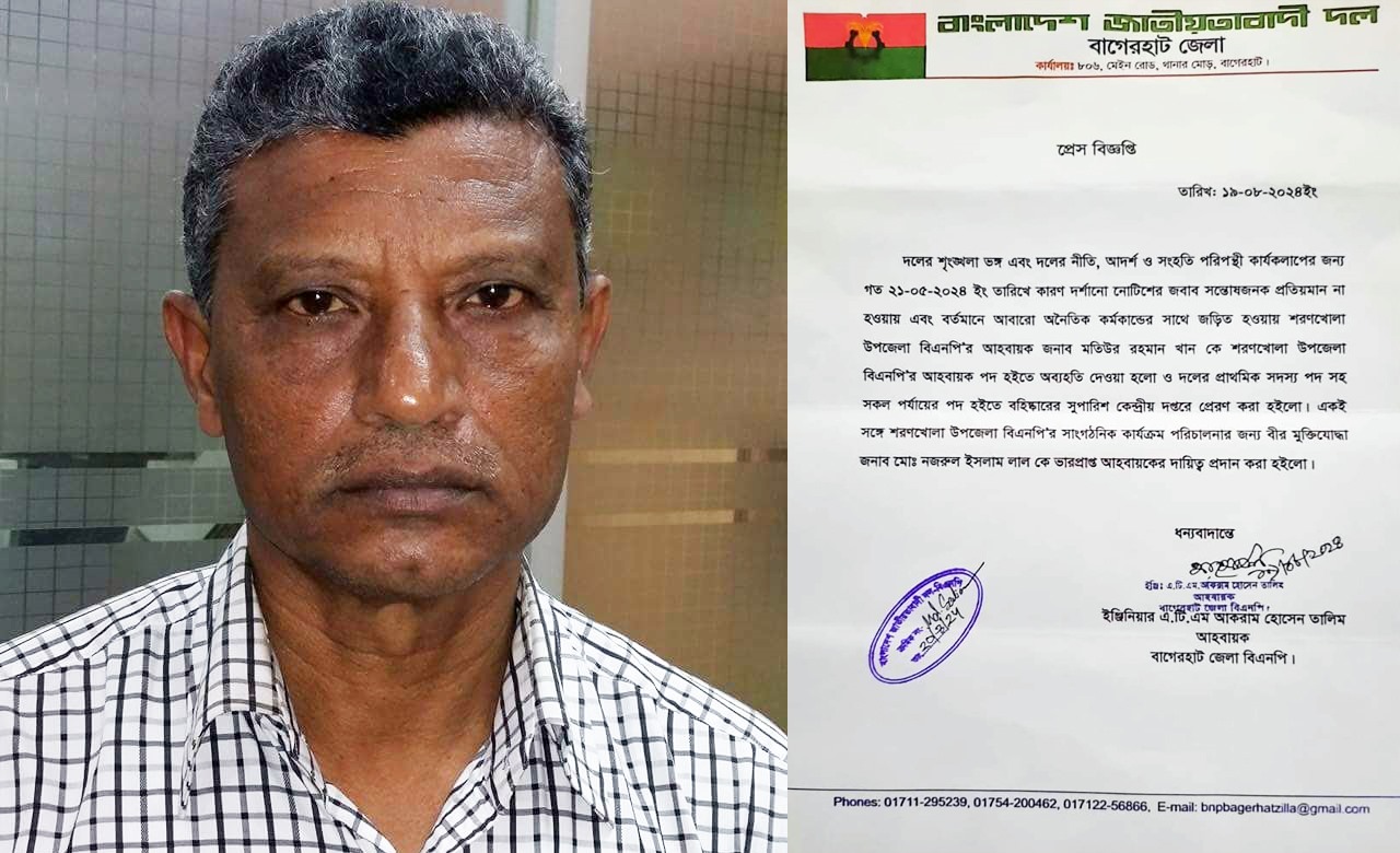 শরণখোলা উপজেলা বিএনপির আহ্বায়ক মতিউর রহমান খান বহিষ্কার