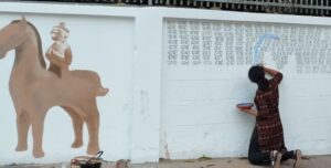 ঢাবির চারুকলা বিভাগের শিক্ষার্থীরা কাজ করেছেন আলপনা ও দেওয়াল লিখনের কাজ ।