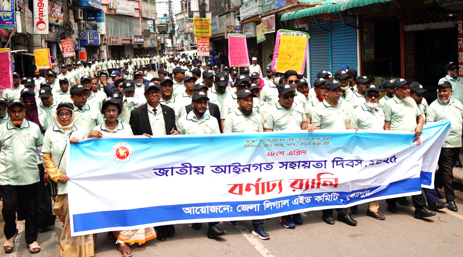 ‘দ্ব›েদ্ব কোনো আনন্দ নাই, আপস করো ভাই, লিগ্যাল এইড আছে পাশে, কোনো চিন্তা নাই’- এ প্রতিপাদ্য বিষয়কে সামনে রেখে শেরপুরে নানা আয়োজনে জাতীয় আইনগত সহায়তা দিবস-২০২৫ পালিত হয়েছে। ২৮ এপ্রিল সোমবার সকালে জেলা ও দায়রা জজ আদালত প্রাঙ্গণে বেলুন ও কবুতর উড়িয়ে দিবসের উদ্বোধন করেন জেলা লিগ্যাল এইড কমিটির চেয়ারম্যান এবং সিনিয়র জেলা ও দায়রা জজ মোহাম্মদ জহিরুল কবির। পরে আদালত প্রাঙ্গণ থেকে এক বর্ণাঢ্য র্যালি বের হয়ে শহরের গুরুত্বপূর্ণ সড়ক প্রদক্ষিণ করে একই জায়গায় গিয়ে শেষ হয়।