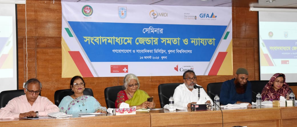 খুলনা বিশ্ববিদ্যালয়ের গণযোগাযোগ ও সাংবাদিকতা (এমসিজে) ডিসিপ্লিনের উদ্যোগে ‘সংবাদমাধ্যমে জেন্ডার সমতা ও ন্যায্যতা’ বিষয়ে এক সেমিনার আজ ১৩ আগস্ট (বুধবার) অনুষ্ঠিত হয়। সকাল ৯.৩০ মিনিটে ইউআরপি লেকচার থিয়েটারে এ সেমিনারে প্রধান অতিথি হিসেবে বক্তব্য রাখেন উপাচার্য প্রফেসর ড. মোঃ রেজাউল করিম।