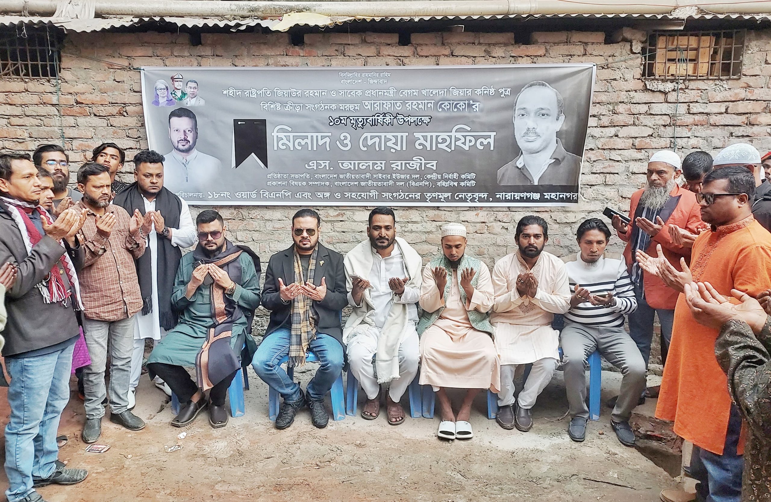 এদিকে, পূর্ব ঘোষিত উক্ত র্যালী কর্মসূচিটির পূর্বে নিতাইগঞ্জে শহীদ রাষ্ট্রপতি জিয়াউর রহমান ও সাবেক প্রধানমন্ত্রী বেগম খালেদা জিয়ার কনিষ্ঠ পুত্র, বিশিষ্ট ক্রীড়া সংগঠক মরহুম আরাফাত রহমান কোকোর ১০ম মৃত্যুবার্ষিকী উপলক্ষ্যে দোয়া অনুষ্ঠিত হয়। মরহুম কোকোর রূহের মাগফেরাত কামনা করে এবং বেগম খালেদা জিয়ার আশু রোগমুক্তি ও দীর্ঘায়ু কামনা, তারেক রহমানের নিরাপদ স্বদেশ প্রত্যাবর্তন কামনা করে দোয়া করা হয়।