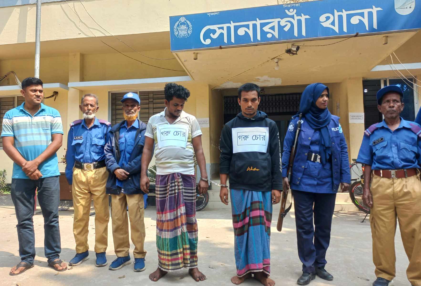 সোনারগাঁ থানার ভারপ্রাপ্ত কর্মকর্তা(ওসি) মোহাম্মদ আব্দুল বারী বলেন, গত রোববার রাতে গোপন সংবাদের ভিক্তিতে উপজেলার বারদী ইউনিয়নের মান্দারপাড়া এলাকায় অভিযান চালিয়ে আন্ত:জেলা গরু চোর চক্রের দুই সদস্যকে গ্রেফতার করা হয়।