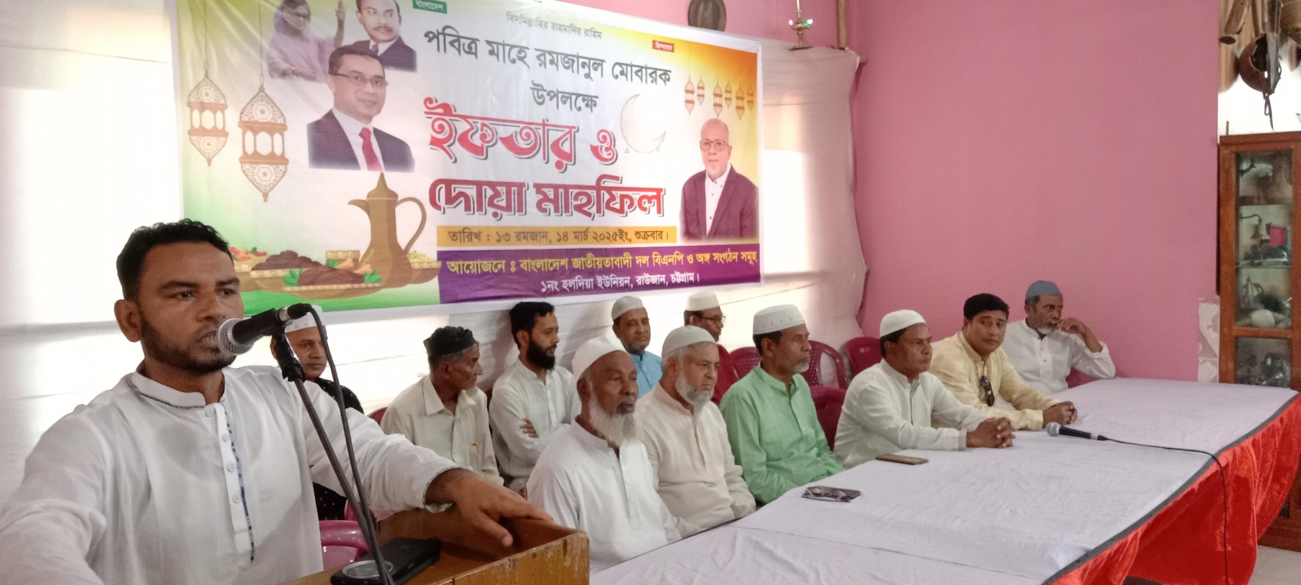 পবিত্র মাহে রমজান উপলক্ষে হলদিয়া ইউনিয়ন বিএনপি ও অঙ্গসংগঠনের উদ্যোগে ইফতার মাহফিল অনুষ্ঠিত হয়েছে। শুক্রবার আমির হাটস্থ মোহম্মদীয় কমিউনিটি সেন্টারের অনুষ্ঠিত ইফতার মাহফিলে সভাপতিত্ব করেন রাউজান উপজেলা বিএনপি যুগ্ম আহবায়ক মুছলেহ উদ্দিন। উপজেলা বিএনপি আহবায়ক কমিটি সদস্য মহিউদ্দিন জীবনের পরিচালনায় প্রধান অতিথি ছিলেন চট্টগ্রাম উত্তর জেলা বিএনপি সদস্য আবু জাফর চৌধুরী। বিশেষ অতিথি ছিলেন বিশিষ্ট দানবীর জে , এ, এম ইকবাল হাসান, রাউজান উপজেলা বিএনপি যুগ্ম আহবায়ক আলহাজ্ব নূরুল হুদা চেয়ারম্যান, রাউজান পৌরসভার বিএনপি যুগ্ম আহবায়ক কাজী আনিসুজ্জামান সোহেল, চট্টগ্রাম উত্তর সেচ্ছাসেবক দলের যুগ্ম আহবায়ক ইউসুফ তালুকদার, বিএনপি সদস্য আবুল কাসেম, হলদিয়া ইউনিয়ন বিএনপি সাবেক সভাপতি সৈয়দ কামাল উদ্দিন, আল্লামা শাস্তার খান আজহারী, হলদিয়া ইউনিয়ন বিএনপি সাবেক সাধারণ সম্পাদক হারুন উর রশিদ বাবুল, উপজেলা সেচ্ছাসেবক দলের সদস্য সচিব একরাম মিয়া, বিএনপি নেতা মনছুর মাস্টার, এস এম নাসির উদ্দিন, হোসেন মাস্টার,আবুল খায়েল মাস্টার, নূরুল আলম তালুকদার, চট্টগ্রাম উত্তর জেলা ছাত্রদলের সহ সভাপতি তসলিম উদ্দিন ইমন, বিএনপি নেতা আহমেদ মিয়া মেম্বার শাহাদাত হোসেন চৌধুরী টিপু, জহুর আহমেদ, সোলাইমান, মোহাম্মদ শফি, কামাল উদ্দিন, সেলিম উদ্দিন, দিদারুল আলম। উপস্থিত ছিলেন ইউসুফ, দিদারুল আলম, কে এম আজগর উদ্দিন চৌধুরী, রাশেদুল ইসলাম চৌধুরী, মওলানা দিদারুল আলম, যুবদল নেতা জয়নাল, আলমগীর, জয়নাল কন্টাকটার, আসলাম, বিএনপি নেতা আলমগীর, জাগের হোসেন, ওমর ফারুক মানিক, সাবেক ছাত্রনেতা ওমর ফারুক, যুবনেতা সোলাইমান, লোকমান, খোরশেদ, তসলিম উদ্দিন, মামুন, মুরাদ, দিদার, ইলিয়াস, জাফর, রাশেদ, বদরুল আলম, নাসির, শাহাজান, জসিম উদ্দিন, আজাদ হোসেন, রিফাত প্রমুখ।