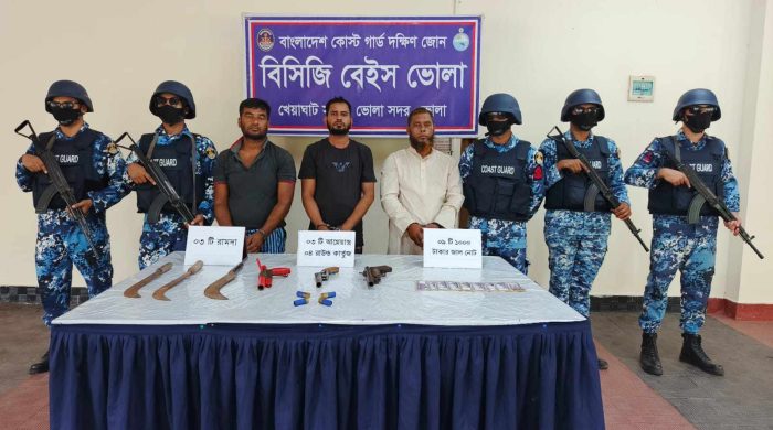 খলিল উদ্দিন ফরিদ।। ভোলা জেলা প্রতিনিধি।। ভোলার দৌলতখান উপজেলার ১ নং মদনপুর ইউনিয়নের চরে অভিযান চালিয়ে ৩টি আগ্নেয়াস্ত্র, ৩টি দেশীয় অস্ত্র, ৪ রাউন্ড কার্তুজ এবং জাল নোটসহ ৩ জন ডাকাত