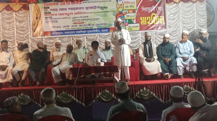 মোঃ সাইফুল্লাহ: মাগুরায় বাংলাদেশ মাজলিসুল মুফাসসিরীনের আয়োজনে সিরাতুন্নবী( সঃ) মাহফিল ১৩ সেপ্টেম্বর শনিবার রাতে মাগুরা শহরের এজি একাডেমির মাঠে অনুষ্ঠিত হয়েছে। মাজলিসুল মুফাসিরীনের মাগুরা জেলা শাখার সভাপতি মাওলানা এফ এম