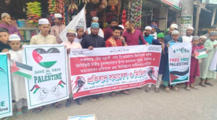 দখলদার ইসরাইলের আগ্রাসনের বিরুদ্ধে, মসজিদুল আকসা পুনরুদ্ধার, মজলুম ফিলিস্তিনিদের সমর্থন এবং পবিত্র রমজান মাসে ভারতের উগ্র হিন্দুত্ববাদ কর্তৃক মুসলিমদের হত্যা ও নির্যাতনের বিরুদ্ধে প্রতিবাদ সমাবেশ ও বিক্ষোভ মিছিল করেছেন গোদাগাড়ীর