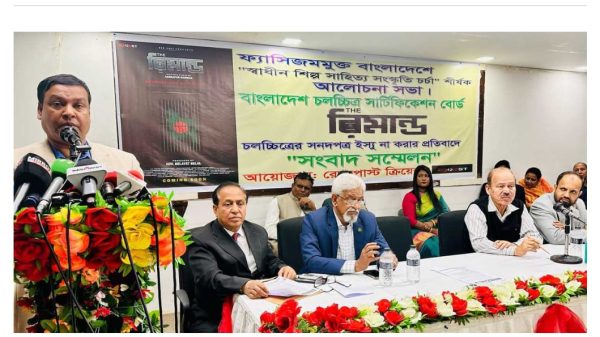 প্রেস বিজ্ঞপ্তি ————— ফ্যাসিবাদ মুক্ত বাংলাদেশে জুলাই ছাত্র জনতার গণ-অভ্যুত্থানের উপর নির্মিত চলচ্চিত্র ‘দ্যা রিমান্ড’ সেন্সর বোর্ডে আটকে রাখা দুঃখজনক, অবিলম্বে ছবিটি সেন্সর ছাড়পত্র প্রদানের আহ্বান জানান বক্তারা। আজ (